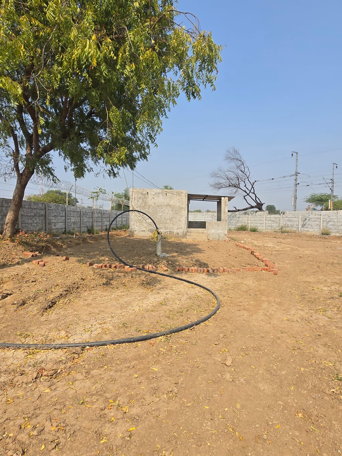 ફરતે ઝાડ નું પ્લાન્ટેશન પાણીની પાઇપલાઇન સાથે.